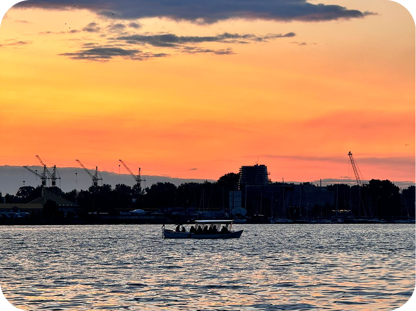As the sun sets, glide gently along the waters of the Daugava, where the evening light paints the river in golden hues. From the deck, take in a breathtaking panorama of Riga: bridges, the spires of the Old Town, and historic architecture that glows with a special charm at sunset. Narrow streets and ancient buildings come alive with evening romance, creating an unforgettable cityscape. Evening cruises take place every day at 20:00. Join us and immerse yourself in this magical atmosphere!